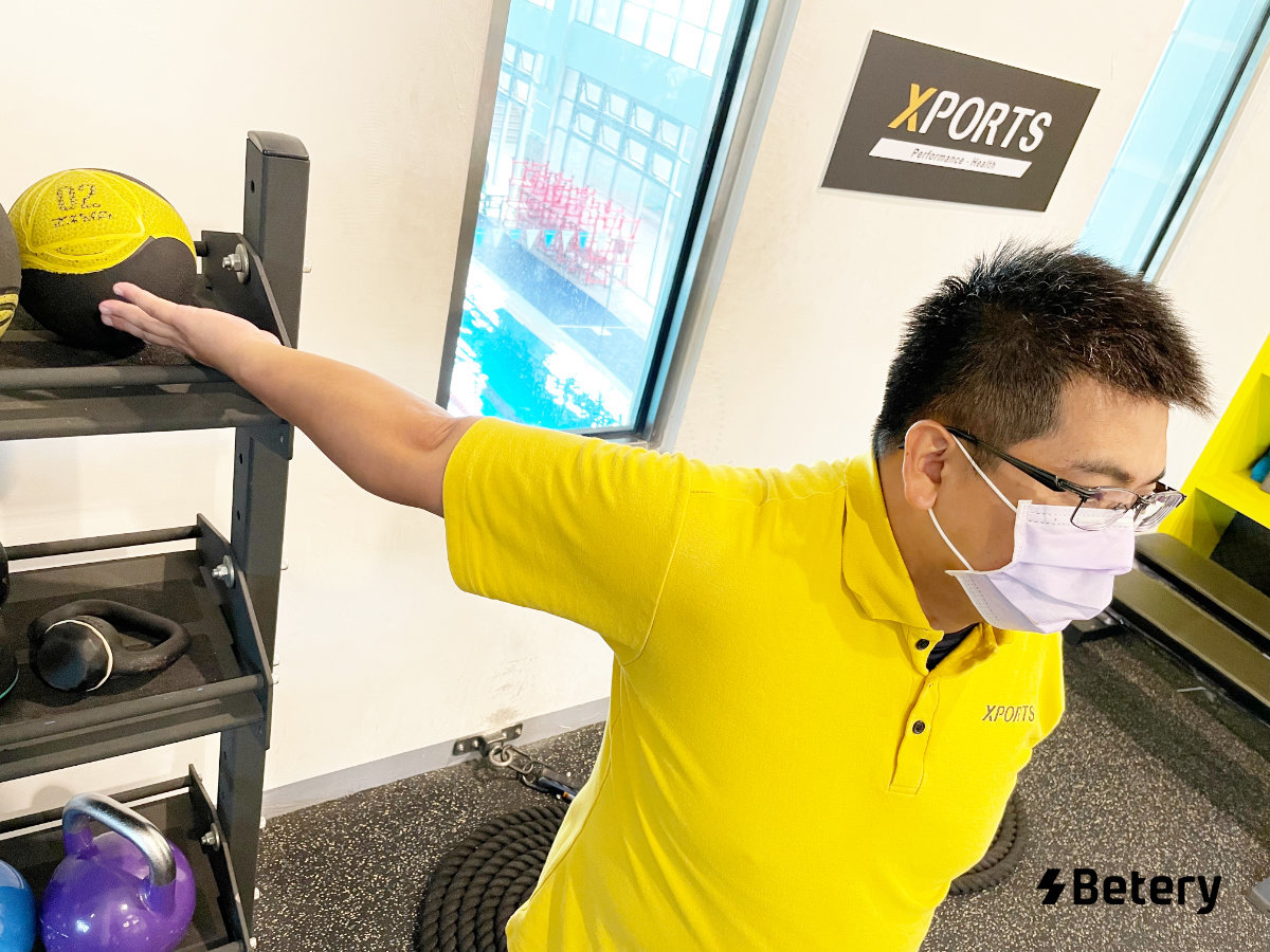 除了背部容易痠痛外,其實手臂痠痛的案件也相當常見。手臂部分包含前中後三角肌、上臂與前臂等肌群,疲勞主因十之八九皆是搬移重物或訓練時,肌力不足所導致的後遺症。此時可以利用按摩球或按摩棍棒等輔助器材,滾動施壓側三角肌群,執行時間不要超過十秒鐘,稍作休息後再反覆按壓,藉此放鬆僵硬的肌肉群。