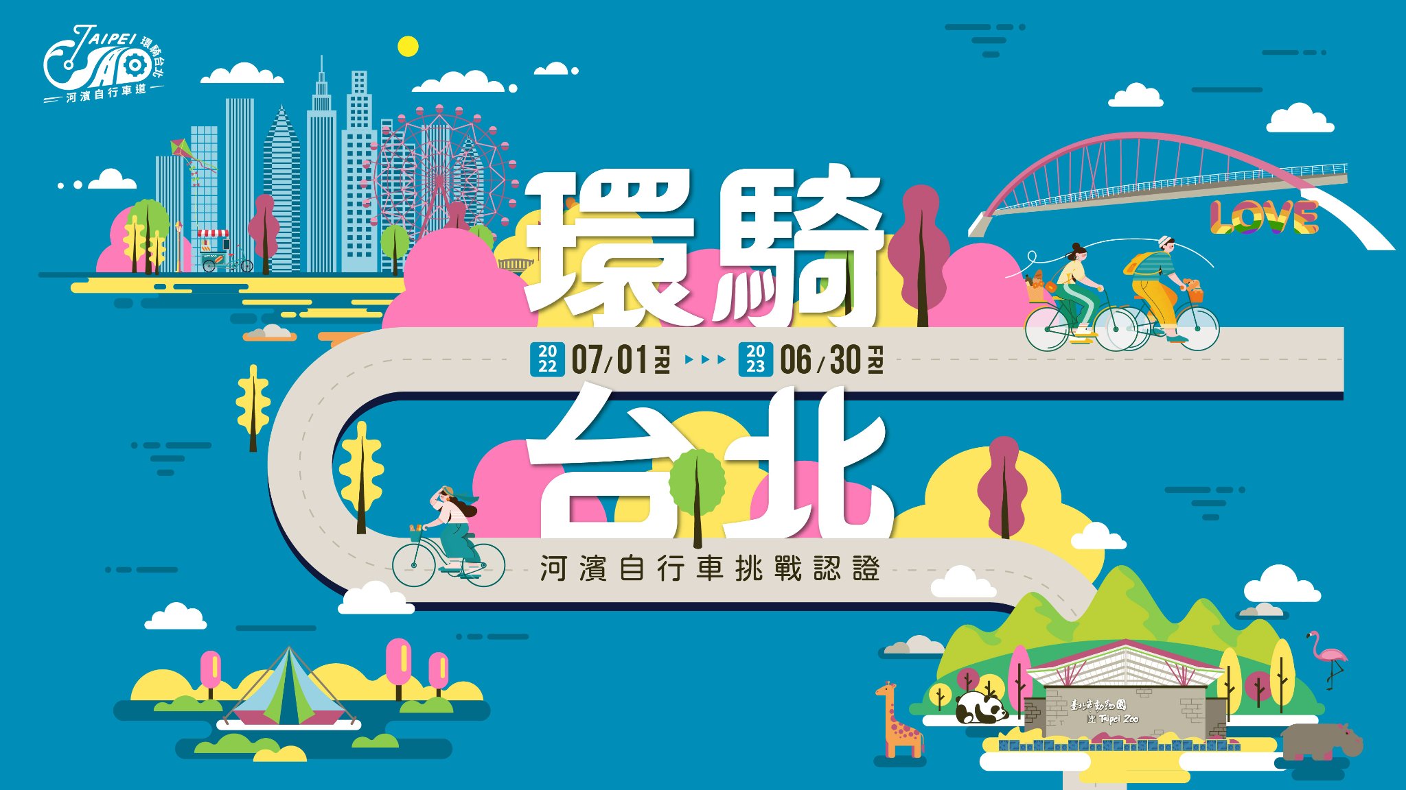 臺北市河濱自行車道自民國91年開始興建,民國101年規劃「臺北市自行車環狀線」環騎路線,將河濱及市區自行車道串連,現已完成全長112公里之河濱自行車道路網建置,臺北市政府工務局水利工程處特別籌辦「環騎台北」河濱自行車挑戰認證,期望透過每月任務,鼓勵民眾認識河濱自行車道之美,並培養長期且持續的運動習慣。