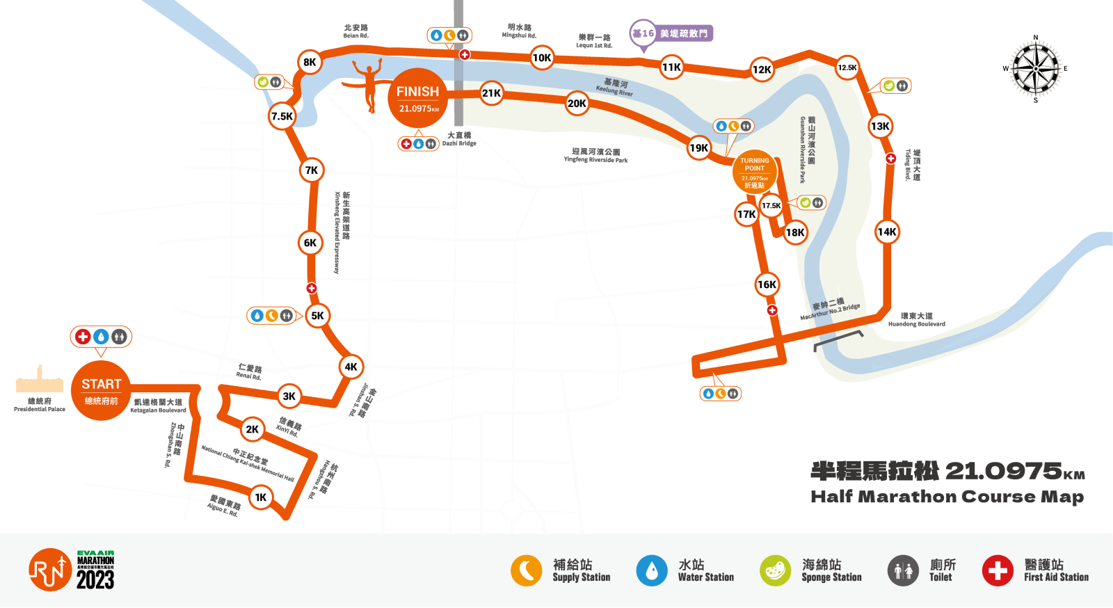 - 半程馬拉松組:21.0975 公里(限時 240 分鐘完賽)